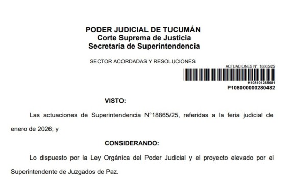 Acordada N° 1350/25 | Feria Judicial Enero 2026 Justicia de Paz