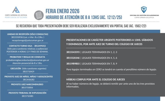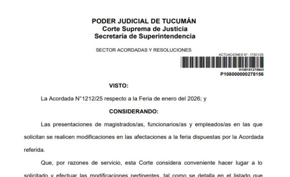 Acordada N° 1418/25 | Feria Enero 2026 - Modif. Ac. N° 1212/25