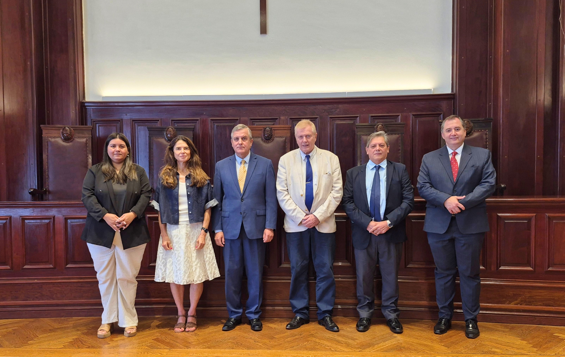 En una ceremonia protocolar realizada en el Salón de Acuerdos del Palacio de Tribunales, la Corte Suprema de Justicia firmó esta mañana un Convenio de Cooperación con la Facultad de Derecho y Ciencias Sociales de la Universidad de Belgrano. El acuerdo fue rubricado por el Presidente de este Alto Tribunal -Dr. Daniel Leiva- y el Decano de la mencionada facultad -Dr. Dino Bellorio-. En representación de la Corte participaron también los Vocales Dra. Claudia Sbdar y Dr. Daniel Posse. Por su parte, el representante de la universidad estuvo acompañado por el Coordinador General de la Escuela de Gobierno de la Provincia, Hugo Navas; y por la Dra. Johana Resola, Coordinadora de dicha institución.