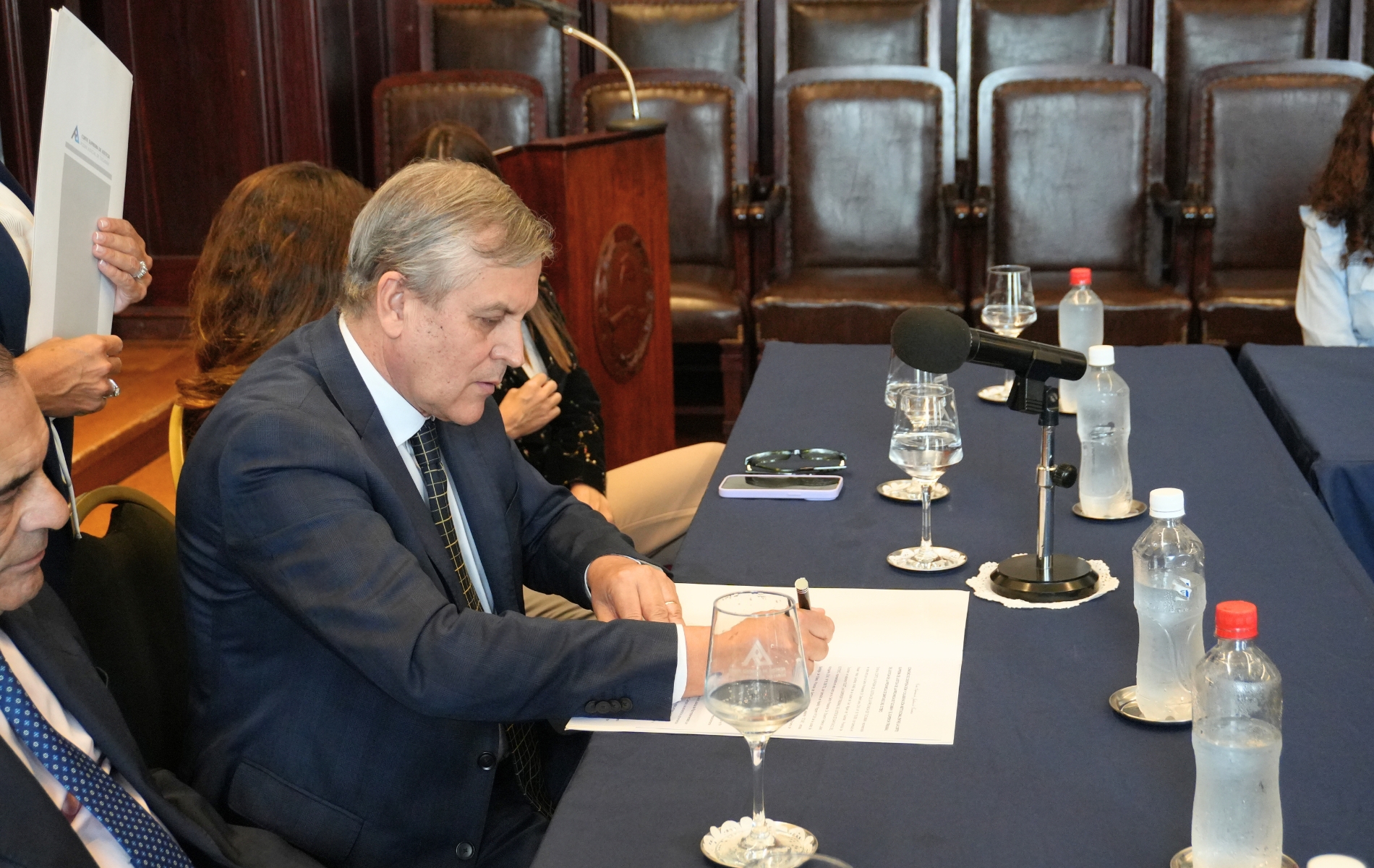 La ceremonia de firma del convenio contó además con la participación, por Tucumán, de la Dra. María Josefina Sánchez, directora de la Oficina de Coordinación Estratégica de la Corte; el Dr. Matías Ferullo, Coordinador de Acceso a Justicia de la Corte; el Dr. Raúl Scrocchi, Superintendente de Justicia de Paz; la Dra. Carina Sleiman, funcionaria de la Superintendencia de Justicia de Paz; los miembros del Equipo de Apoyo a Justicia de Paz, Dr. Evaristo Paz, Dra. Victoria Silvetti y Proc. Guadalupe Chalín; y el Ing. Hugo Ibarra, funcionario de la Corte. En representación del Poder Judicial de Santiago del Estero estuvo la Dra. Gabriela Álvarez, titular del Centro de Coordinación para la Justicia de Paz no letrada de dicha provincia.