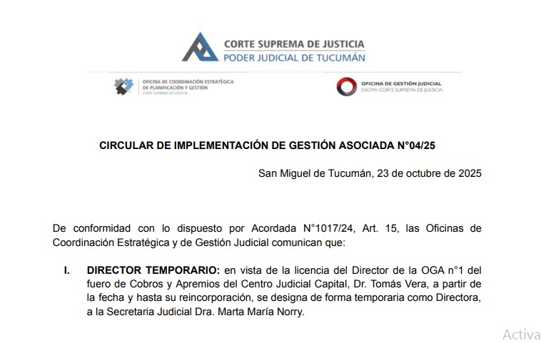 Circular de implementación de Gestión Asociada N° 04/2025