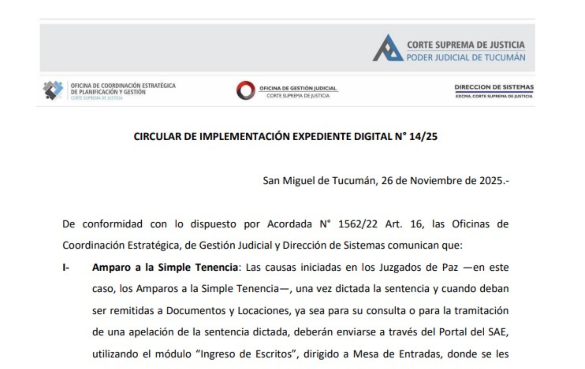 Circular de implementación del Expediente Digital N° 14/25 Instructivo E40